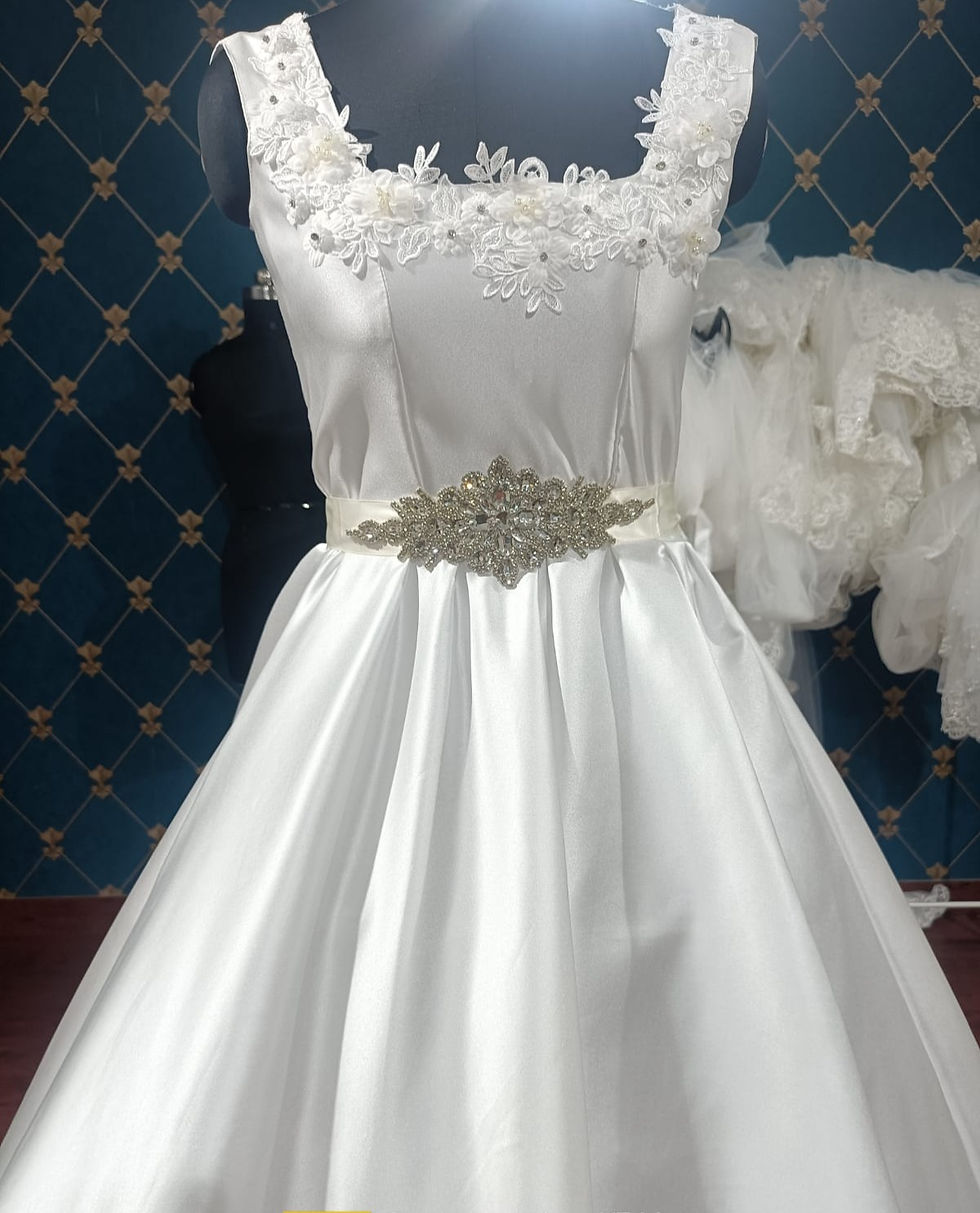 Christian and Catholic Bridal Satin Train Belt GownLink India